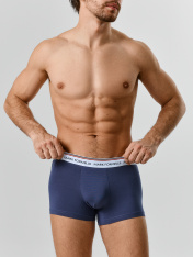 Набор мужских трусов-боксеров из хлопковой кулирки — это комфорт и надежность на каждый день. Прилегающий крой обеспечивает плотную, но не сковывающую посадку, подчеркивая анатомические линии и обеспечивая свободу движений. Ластовица добавляет удобства и гигиеничности, особенно при длительном ношении. Эластичный пояс с повторяющимся логотипом не только надежно фиксирует изделие на талии, но и придает модели современный спортивный акцент. Нижние срезы аккуратно обработаны швом вподгибку, что сохраняет форму и внешний вид даже после многократных стирок. Хлопковая кулирка — мягкий, дышащий материал, который приятен к телу и подходит для чувствительной кожи. Такой набор станет отличным выбором для тех, кто ценит комфорт, качество и лаконичный стиль. _x000D_ В наборе: 2 шт_x000D_