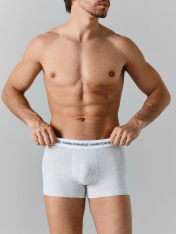 Мужские трусы-боксеры обеспечивают максимальный комфорт и удобную посадку благодаря продуманному дизайну. Облегающий крой без боковых швов дарит свободу движений, исключая лишнее трение и создавая ощущение легкости в течение дня. Модель выполнена изтрикотажной кулирки — мягкого, эластичного и воздухопроницаемого материала, который приятно прилегает к коже и сохраняет форму даже после многократных стирок. Верхний срез дополнен фирменной жаккардовой эластичной тесьмой с логотипом бренда, придающей стильный акцент и надежно фиксирующей изделие. Нижние срезы аккуратно обработаны швом вподгибку, что гарантирует долговечность и эстетичный вид. Эти боксеры — идеальный выбор для тех, кто ценит сочетание качества, удобства и современного дизайна внижнем белье. Отличный вариант для ежедневной носки, который гармонично объединяет практичность и стиль.