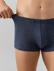 Черные трусы-боксеры мужские с узором — это стильное и комфортное белье для повседневной носки. Модель выполнена из мягкого дышащего трикотажа, который нежно облегает тело, не сковывая движений. Эластичный пояс мягко фиксирует трусы на талии, не оставляя следов, а плоские швы исключают натирание даже при активном образе жизни.<br>_x000D_ <br>_x000D_ Узорчатый дизайн добавляет образу современности, сохраняя лаконичность. Спинка и передняя часть изделия продуманы для максимального удобства: цельнокроеная конструкция и аккуратная обработка краев обеспечивают долговечность и сохранение формы после стирок.<br>_x000D_ <br>_x000D_ Эти трусы-боксеры подходят для спорта, отдыха или сна. Если вы ищете, где купить мужское белье, которое сочетает качественные материалы, удобный крой и стильный дизайн, эта модель станет отличным выбором._x000D_