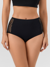 Очаровательные трусики-макси из нежного хлопкового полотна в базовой расцветке. Высокая посадка по талии, широкие боковые части и полностью закрытые ягодицы – залог комфортной посадки на фигуре. Полупрозрачные кружевные вставки по бокам добавляют этим макси игривости. Модель отлично подойдет дамам с пышными формами!