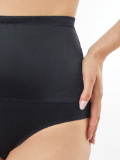 Корректирующие трусики с высокой посадкой. Деликатно утягивают проблемные зоны, формируя элегантный женственный силуэт. Нижняя часть модели выполнена из натурального хлопкового полотна, верхняя – из полотна эластик. На поясе – эластичная тесьма, по ножкам – бейка. Базовая расцветка – рекомендуем!