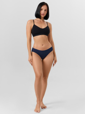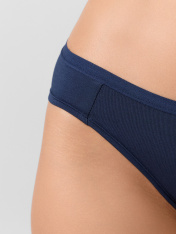 Женские трусы-бразилиана из натурального хлопка с добавлением эластана — это идеальный выбор для повседневной носки. Модель с заниженной линией талии обеспечивает комфорт и практически незаметна под облегающей одеждой. Верхний срез оформлен тонкой эластичной тесьмой, которая мягко фиксирует трусики, не оставляя следов и не создавая дискомфорта даже при длительном ношении.<br>_x000D_ <br>_x000D_ Обработка по ножкам аккуратным швом гарантирует удобную посадку без натирания, повторяя естественные изгибы тела.Наличие эластана в составе обеспечивает идеальное облегание и сохранение формы после множества стирок. _x000D_ Эти трусы станут надежным и практичным вариантом для нижнего белья, сочетая в себе простоту ухода и ежедневный комфорт._x000D_