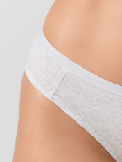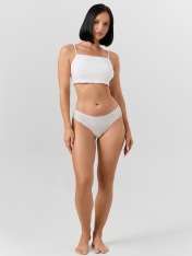 Женские трусы-бразилиана из натурального хлопка с добавлением эластана — это идеальный выбор для повседневной носки. Модель с заниженной линией талии обеспечивает комфорт и практически незаметна под облегающей одеждой. Верхний срез оформлен тонкой эластичной тесьмой, которая мягко фиксирует трусики, не оставляя следов и не создавая дискомфорта даже при длительном ношении.<br>_x000D_ <br>_x000D_ Обработка по ножкам аккуратным швом гарантирует удобную посадку без натирания, повторяя естественные изгибы тела.Наличие эластана в составе обеспечивает идеальное облегание и сохранение формы после множества стирок. _x000D_ Эти трусы станут надежным и практичным вариантом для нижнего белья, сочетая в себе простоту ухода и ежедневный комфорт._x000D_