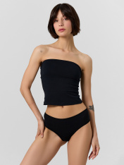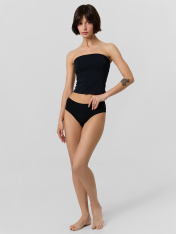 Качественные и комфортные трусики-шорты из трикотажного полотна. Линия талии классическая. На верхнем срезе трусиков и по ножкам – тонкая эластичная тесьма. Задняя деталь выполнена из элегантного полупрозрачного кружева. Комфортный вариант на каждыйдень!