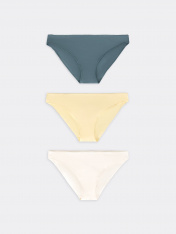 Набор (мультипак) из трех пар женских трусов разного цвета. Трусы женские слипы хлопковые или, как их еще называют, слип-бикини — популярная модель женского белья. Невероятно удобные, благодаря своей заниженной посадке, они пользуются заслуженной любовью покупательниц. Трусы изготовлены из высококачественного натурального хлопка, дышащего, мягкого, гипоаллергенного. Продуманная анатомическая конструкция, плоские швы и деликатные резиночки делают эту модель подходящей для занятий спортом. Пригодятся трусики будущим мамам: низкая талия трусиков удобно помещается под растущим животиком и абсолютно не давит. Рекомендуем!