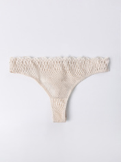 Трусы женские, высокая линия талии, силуэт - бразилиано. Передняя деталь выполнена из кружева. ластовица из кружева, подкладка из хлопка. Задние детали из р.2052. По верхнему срезу передней детали жилка 6мм. под кружевом. По верхнему срезу задней детали трусов тесьма с зубом 10мм. (рабочая зона 8мм.). Нижние срезы задних деталей обработаны в подгибку. нижние срезы передней детали и ластовицы обработаны жилкой