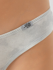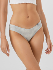 Трусы женские, средняя линия талии, силуэт - бразилиано. Передняя и задняя детали выполнены из рибаны. Верхний срез трусов обработан бейкой поперечной из рибаны, внутри жилка 6мм. Нижние срезы обработаны бейками поперечными из рибаны. Подкладка ластовицы из хлопка, отлетная по верхнему срезу. Посередине бейки по верхнему срезу передней и задней детали застрочена «птичка». _x000D_