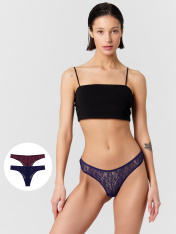 Женские трусики бразилиана мультипак (2 шт.) из эластичного кружевного материала. Тип посадки - средняя. Верхний и нижние срезу трусиков обработаны тесьмой. Очаровательная модель для повседневной носки и особых случаев. За счет тонкого и невесомо материала практически не чувствуются на теле. Трусики не выделяются, а это значит, что их можно с удовольствием носить с обтягивающей одеждой. Красивые, стильные и удобные — лучший вариант для тех, кто устал от обычных классических. Отлично тянутся, хорошо пропускают воздух и не создают парникового эффекта. Купите набор трусиков бразилиана вместе с изящным верхом. Размерный ряд широкий. Порадуйте себя и близких красивым женским бельем на праздники и просто без повода!