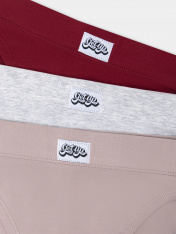 Набор женских трусиков-слипов со средней посадкой — идеальное сочетание комфорта, качества и стильного дизайна. Модели выполнены из нежной кулирной глади — мягкого, дышащего материала, который обеспечивает максимальное удобство при носке. Натуральный состав ткани делает изделия гипоаллергенными и подходит даже для самой чувствительной кожи, предотвращая раздражение и обеспечивая приятные ощущения на протяжении всего дня. Благодаря своей прочности и долговечности, материал устойчив к многократным стиркам, сохраняя первоначальную форму и мягкость.На передней части трусиков — стильная нашивка из ткани, которая подчеркивает брендовый акцент и делает модель еще более привлекательной. Этот практичный набор из трех трусиков станет незаменимым элементом вашего гардероба, сочетая удобную посадку, мягкую текстуру и элегантный минималистичный дизайн. Отличный выбор для тех, кто ценит качество, комфорт и стиль в каждой детали! _x000D_ В наборе: 3 шт._x000D_ _x000D_