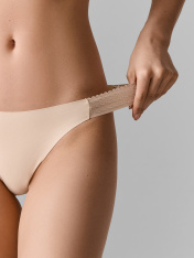 Трусы женские, средняя линия талии, силуэт-слипы. Передняя и задняя детали выполнены из интерлока. Подкладка ластовицы выполнена из кулирки, отлетная по переднему срезу. Боковые протяжки трусов выполнены из декоративной тесьмы.