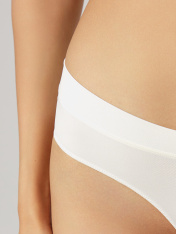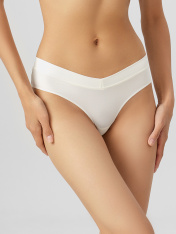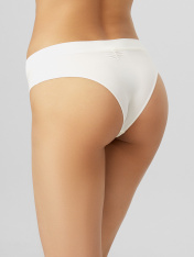 Женские трусы силуэта «бразилиана» со средней посадкой выполнены из мягкой и гладкой микрофибры, которая обеспечивает комфорт и легкость в носке. Ластовица из кулирной глади добавляет гигиеничности и приятные тактильные ощущения. Задняя деталь украшена сборкой по центру в верхней части, что придает модели изящный акцент и подчеркивает форму. Нижние срезы обработаны эластичной тесьмой, благодаря чему изделие надежно фиксируется, не создавая дискомфорта и оставаясь незаметным под одеждой. Такой вариант идеально подойдет для тех, кто ценит сочетание удобства и утонченного дизайна._x000D_