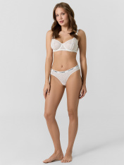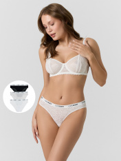 Набор женских трусиков-слипов из нежного кружева — это утонченное сочетание комфорта и элегантности. Декоративная эластичная тесьма по линии талии не только фиксирует изделие, но и придает ему изысканный акцент, подчеркивая женственность силуэта. Ластовица выполнена из мягкой кулирной глади — натурального хлопкового материала, который обеспечивает гигиеничность, воздухопроницаемость и комфорт в течение всего дня. Такая комбинация материалов делает модель не только красивой, но и практичной для повседневной носки. Идеальный выбор для тех, кто ценит изящные детали, натуральные ткани и удобную посадку. _x000D_ В наборе: 3 шт._x000D_