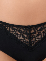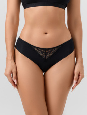 Женские бесшовные трусы сочетают в себе современные технологии и элегантный дизайн. Модель отличается особой конструкцией, обеспечивающей идеально гладкую поверхность без внутренних швов. Передняя часть украшена нежным эластичным кружевом, которое добавляет образу женственности, не нарушая комфорта. Эластичная резинка по талии мягко фиксирует изделие, не оставляя следов на коже. Ластовица с подкладкой из основного материала гарантирует гигиеничность и поддерживает естественный баланс кожи в течение дня. <br>_x000D_ <br>_x000D_ Состав с преобладанием хлопка и добавлением эластана обеспечивает воздухообмен, идеальную посадку и сохранение формы. Эти трусы остаются совершенно незаметными под облегающей одеждой, делая их универсальным решением для любого гардероба.