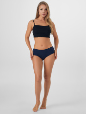 Женские шорты-трусы из эластичной рибаны созданы для максимального комфорта. Передняя и задняя часть выкроены как единое целое без боковых швов, что обеспечивает гладкую посадку и исключает натирание._x000D_ Мягкая хлопковая вставка в области ластовицы обеспечивает дополнительный комфорт и гигиеничность. Все края изделия аккуратно обработаны эластичными полосками материала, которые мягко облегают тело без давления.<br>_x000D_ Широкий пояс из дышащей резинки надежно фиксирует шорты, не перетягивая талию. Натуральный состав с добавлением эластана обеспечивает идеальное облегание, сохраняя форму после множества стирок. <br>_x000D_ <br>_x000D_ Практичные и нежные — эти шорты станут вашим любимым бельевым базисом на каждый день._x000D_