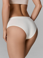 Трусы женские, силуэт - шорты, выполнены из триктажного кулирного полотна. Верхние срезы обработы эл тесьмой 25мм (жаккард JT19-25, Sedat арт. MF D-1 ) на плоскошовной машине. Задняя и передняя деталь цельнокроеные. Подкладка ластовица отлетная по переду из основного полотна.