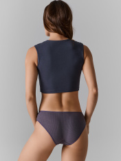 Трусы женские, средняя линия талии, силуэт - слипы. Выполнены из трикотажного полотна рибана 3*2. Верхний и нижние срезы обработаны эл. тесьмой 15мм (ловабль F1-15, Arteks E2366) на плоскошовной машине._x000D_ Подкладка ластовицы отрезная, выполнена из кулирного полотна.