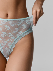 Трусы женские, высокая линия талии, силуэт - классика. Выполнены кружевного полотна. Верхний срез обработан эл. тесьмой 15мм (ловабль F1-15, Arteks E2366) на плоскошовной машине._x000D_ Нижние срезы декорированы узким кружевом Roja 2, арт MLB20309-2.5, 2,5см,код L92-2.5, настрочены на плоскошовной машине. Подкладка ластовицы отрезная, выполнена из кулирного полотна.