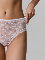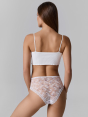 Трусы женские, высокая линия талии, силуэт - классика. Выполнены кружевного полотна. Верхний срез обработан эл. тесьмой 15мм (ловабль F1-15, Arteks E2366) на плоскошовной машине._x000D_ Нижние срезы декорированы узким кружевом Roja 2, арт MLB20309-2.5, 2,5см,код L92-2.5, настрочены на плоскошовной машине. Подкладка ластовицы отрезная, выполнена из кулирного полотна.