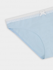 Трусы с боковыми швами. Детали переда и сидения цельнокроеные. Ластовица из основного полотна, отлетная по верхнему срезу. Нижние срезы трусов обработаны с швом в подгибку с жилкой тканой 6мм (Devsel 13460W). К верхнему срезу трусов притачано кружево 15мм, Devsel L20166-1.5_x000D_ Декор по заданию - бантик (6737-0011А)