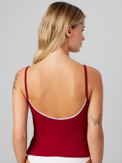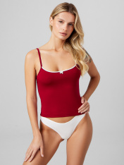 Женский топ из мягкого дышащего хлопка создан для повседневного комфорта. Облегающий силуэт с длиной чуть ниже талии мягко подчеркивает фигуру. Передняя и задняя части цельнокроеные — это исключает боковые швы и делает посадку идеальной._x000D_ Горловина переда и спинки с изящным вырезом обработана эластичной тесьмой, которая сохраняет форму и предотвращает растягивание. Низ топа аккуратно подогнут и прострочен для аккуратного вида. Декор в виде миниатюрного бантика по центру спереди добавляет моделинежности и легкости._x000D_ Топ подходит под одежду с открытыми плечами или как самостоятельный элемент летнего гардероба. Материал сохраняет цвет и форму после стирки, не теряя мягкости. Практичный и универсальный — идеален для создания как повседневных,так и романтичных образов._x000D_