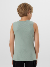 Стильная и комфортная майка из трикотажной рибаны. В составе преодладает натуральный хлопок. Длина до середины бедер. Силуэт прилегающий. Горловина круглая, окантована бейкой. Идеально для вашего мальчика!
