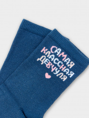 рис.3061 Детские классические носки с рисунком в виде надписи "Самая классная девчуля".