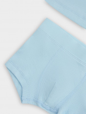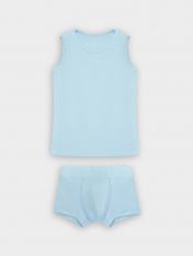 Бельевой комплект для мальчиков — удобный и практичный вариант для повседневного комфорта. Майка прилегающего силуэта без рукавов создана из трикотажной рибаны, которая мягко облегает тело, обеспечивая комфортную посадку. Длина до середины бедра делает модель универсальной, а круглая горловина добавляет классический акцент. Трусы прилегающей формы без боковых швов выполнены из рибаны, что обеспечивает удобное прилегание и свободу движений. Эластичный пояс мягко фиксирует изделие, не создавая давления, а подкладка гульфика из трикотажной кулирки добавляет комфорт и практичность. Нижние срезы трусов аккуратно застрочены в подгибку, что гарантирует долговечность и сохранение формы даже после многократных стирок. Отличный комплект для тех, ктоценит комфорт и качество в базовом белье!