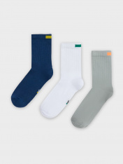 рис.1937 Мультипак из трех пар детских гладких носков с высокой резинкой и рисунком в виде прямоугольника на бортике.