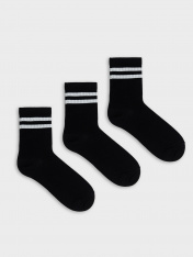 Носки детские из высококачественного хлопка с высокой резинкой и рисунком в виде поперечных полосок мультипак (3 пары). Натуральные волокна отлично пропускают воздух и впитывают влагу, дарят ощущение комфорта в течение дня. Благодаря небольшому количеству эластана в составе, носки удобно сидят на ножке и не сползают, хорошо тянутся и легко надеваются. Пятка и мысок дополнительно укреплены для защиты от протирания. Резинка мягко, но надежно удерживает носки, не оставляя на коже следов. Этот набор детских носков точно понравится вашей маленькой моднице. Рекомендуем!
