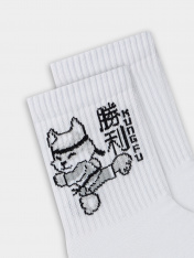 Эти веселые носочки с забавным котом-каратистом и восточными иероглифами подарят хорошее настроение вашему ребенку. <br>_x000D_ <br>_x000D_ Носки изготовлены из комбинированного материала с преобладанием натурального хлопка, который обеспечивает мягкость, воздухопроницаемость и комфорт даже при активных движениях. Добавление эластана повышает износостойкость и сохраняет форму.<br>_x000D_ <br>_x000D_ Высокая резинка бережно фиксирует носок, не сползая и не сдавливая ножку, а забавный рисунок кота в стиле карате с иероглифами делает их стильным дополнением любого образа.<br>_x000D_ <br>_x000D_ Носочки Mark Formelle идеально подойдут для детского сада, спортивных занятий и повседневной носки. Они легко сочетаются с любой обувью, добавляя образу игривую нотку. _x000D_