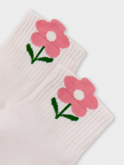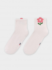 Детские носки из высококачественного хлопка с объёмным рисунком в виде цветка на бортике. Модель средней высоты. Натуральные волокна отлично пропускают воздух и впитывают влагу, дарят ощущение комфорта в течение дня. Благодаря небольшому количеству эластана в составе, высокие детские носки удобно сидят и не сползают, хорошо тянутся и легко надеваются. Пятка и мысок дополнительно укреплены для защиты от протирания. Резинка мягко, но надежно удерживает носки, не оставляя на коже следов. В ассортименте Mark Formelle можно выбрать самые разнообразные дизайны и расцветки: однотонные зеленые, желтые, синие или серые детские носки подойдут и для мальчика, и для девочек, найдутся модели в полоску, с оригинальными авторскими рисунками, орнаментами,а также базовые носки белые и черные детские. Маленьким модникам точно понравятся! _x000D_