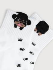 Детские носки из высококачественного хлопка с объемным рисунком в виде собаки. Модель средней высоты. Натуральные волокна отлично пропускают воздух и впитывают влагу, дарят ощущение комфорта в течение дня. Благодаря небольшому количеству эластана в составе, высокие детские носки удобно сидят и не сползают, хорошо тянутся и легко надеваются. Пятка и мысок дополнительно укреплены для защиты от протирания. Резинка мягко, но надежно удерживает носки, не оставляя на коже следов. В ассортименте Mark Formelle можно выбрать самые разнообразные дизайны и расцветки: однотонные зеленые, желтые, синие или серые детские носки подойдут и для мальчика, и для девочек, найдутся модели в полоску, с оригинальными авторскими рисунками, орнаментами, а также базовые носки белые и черные детские. Маленьким модникам точно понравятся!