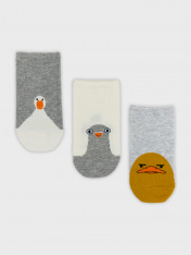 рис.3199 Мультипак из суперкоротких детских носков с рисунком в виде разных гуся, голубя и утки. Составляющие:453A-3200, 453A-3201, 453A-3202