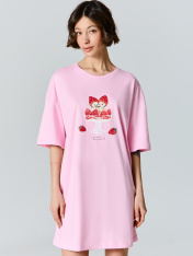 Женская туника черного цвета с принтом станет любимым предметом гардероба для дома. Она выполнена из мягкого и дышащего трикотажа на основе хлопка, который обеспечивает комфорт и приятные тактильные ощущения.<br>_x000D_ <br>_x000D_ Свободный крой не сковывает движений, позволяя заниматься повседневными делами или отдыхать. Рукава со спущенной линией плеча и круглый вырез горловины создают расслабленный силуэт. Модель идеально подходит для сна, утреннего кофе или неспешного отдыха._x000D_
