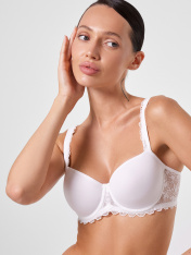 Бюстгальтер макси с инновационной чашкой spacer. Невесомая чашка на косточках из тонкого дышащего материала обеспечивает превосходный комфорт и поддержку. Боковые детали стана из полупрозрачного кружева делают бюстгальтер еще более женственным. Модель идеально подойдет обладательницам пышного бюста. Благодаря специально разработанной анатомической конструкции, он удерживает на месте пышную грудь, сохраняя естественный и соблазнительный вид декольте. Универсальный дизайн делает этот бюстгальтер актуальным для любого наряда и ситуации. Длина бретелей регулируется. Для создания безупречного образа не забудьте добавить в комплект пару подходящих трусиков из коллекции. Рекомендуем!
