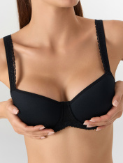 Бюстгальтер макси с инновационной чашкой spacer. Невесомая чашка на косточках из тонкого дышащего материала обеспечивает превосходный комфорт и поддержку. Боковые детали стана из полупрозрачного кружева делают бюстгальтер еще более женственным. Модель идеально подойдет обладательницам пышного бюста. Благодаря специально разработанной анатомической конструкции, он удерживает на месте пышную грудь, сохраняя естественный и соблазнительный вид декольте. Универсальный дизайн делает этот бюстгальтер актуальным для любого наряда и ситуации. Длина бретелей регулируется. Для создания безупречного образа не забудьте добавить в комплект пару подходящих трусиков из коллекции. Рекомендуем!