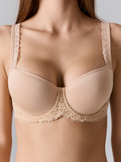 Бюстгальтер макси с инновационной чашкой spacer. Невесомая чашка на косточках из тонкого дышащего материала обеспечивает превосходный комфорт и поддержку. Боковые детали стана из полупрозрачного кружева делают бюстгальтер еще более женственным. Модель идеально подойдет обладательницам пышного бюста. Благодаря специально разработанной анатомической конструкции, он удерживает на месте пышную грудь, сохраняя естественный и соблазнительный вид декольте. Универсальный дизайн делает этот бюстгальтер актуальным для любого наряда и ситуации. Длина бретелей регулируется. Для создания безупречного образа не забудьте добавить в комплект пару подходящих трусиков из коллекции. Рекомендуем!
