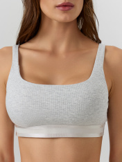 Нетривиальное женское бюстье из рибаны, фактура которой придает особый шарм повседневному белью. Мягкие чашки без косточек дарят максимальный комфорт. Бретели в бюстье регулируемые, а чашки – со съемными вкладышами.