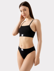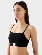 Стильное бюстье женское на тонких бретельках из кулирной глади. Выполнена модель в спортивном стиле. Перед и спинка цельные. Перед на подкладке из кулирной глади. По центру на передней детали на поясе настрочен декор - тканая этикетка. Бретельки с кольцами-регуляторми. Все используемые материалы - самого высокого качества: дышащие, гипоаллергенные и безопасные, сохраняют внешний вид даже после многочисленных стирок. Благодаря продуманной анатомической конструкции модель практически не ощущаетсяна теле, при этом обеспечивает деликатную поддержку груди — идеальный вариант для повседневной носки. Не отказывайте себе в удовольствии носить красивое и удобное нижнее бельё!