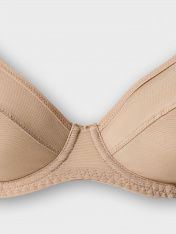 Бюстгальтер женский с мягкими чашками, на каркасах._x000D_ Чашки с тройным членением из эластичной сетки. Верхний срез чашки обработан эластичной тесьмой. Стан из эластичной сетки._x000D_ Ластовица на подкладке из монокапрона._x000D_ По пройме и по верхнему срезу стана в один прием эластичная тесьма по размерам. По нижнему срезу стана настрочена в один прием эластичная тесьма по размерам._x000D_ Бретель по размерам с регулировкой по длине. Кольца и регуляторы._x000D_ Застежка по размерам.