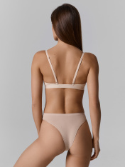 Бюстье женское из кулирного полотна. Перед со средним швом. Чашки подформованные на подкладке из кулирного полотна, со съемными чашками-вкладышами._x000D_ Бочки отрезные, на подкладке из кулирного полотна. _x000D_ Верхний срез, срезы проймы и верхние срезы бочков обтачаны подкладкой с эластичной тесьмой 6 мм (жилка тканая WT4-6, девсел 13460W) внутри._x000D_ Бретель 10 мм (SWE2-10, девсел 1879W) с регулировкой по длине, с застежками-крючками по спинке. Рамки и застежки-крючки съемные пластиковые 10 мм в цвет бретели._x000D_ По нижнему срезу настрочена жаккардовая эл тесьма 25 мм (жаккард принт JTP1-25) вкруговую. _x000D_