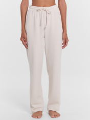 Уют, комфорт и нежность — все это вы найдете в этих домашних женских брюках прямого силуэта из трикотажного полотна. Они созданы специально для сна и отдыха, чтобы вы могли наслаждаться моментами дома с максимальным комфортом. Высокая талия обеспечивает надежную посадку, дарит ощущение уверенности и комфорта. Пояс с эластичной тесьмой внутри и регулировочным шнуром. Сиденье слегка спущено. Неважно, смотрите ли вы фильм дома, читаете книгу, просто готовите, или занимаетесь спортом, эти брюки обеспечат вам необходимую свободу движений и уют. Они идеальны для домашней коллекции и станут незаменимым элементом женского гардероба. Сочетайте их с легкими топами или футболками, чтобы создать непринужденный и модный образ в домашней обстановке. Позвольте себе окунуться в атмосферу уюта с этими домашними брюками. Рекомендуем!