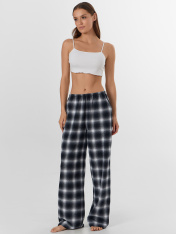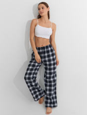 Женские домашние брюки в клетку от Mark Formelle созданы для максимального комфорта и уюта. Модель свободного силуэта идеально подходит для расслабленного отдыха и спокойного сна. Эластичный пояс на кулиске мягко фиксирует брюки, обеспечивая идеальную посадку без сдавливания. Стильные боковые карманы-«хулиганы» добавляют образу практичности._x000D_ Брюки выполнены из чистого хлопка — натуральный материал нежно заботится о коже, обеспечивая оптимальный температурный баланс. Универсальный дизайн брюк позволяет сочетать их с разными домашними вещами, а практичный состав обеспечивает легкость в уходе.<br>_x000D_ <br>_x000D_ Классическая клетка добавляет образу интересный акцент, а свободный крой гарантирует полную свободу движений. Мягкая текстура ткани дарит приятные тактильные ощущения. Эти брюки станут вашим любимым предметом гардероба для моментов полного расслабления, даря комфорт в течение всего дня._x000D_