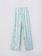 Домашние брюки — это воплощение расслабленного комфорта и стиля. Свободный силуэт с посадкой на талии обеспечивает легкость и полную свободу движений, идеально подходя для отдыха дома._x000D_ Пояс, выполненный как единое целое с брюками, дополнен мягкой резинкой внутри для удобной фиксации. Через центр пояса продета декоративная бейка из основного материала, добавляющая аккуратный завершающий штрих. _x000D_ <br> Карманы на передних деталях сочетают практичность и игривый акцент. Низ брюк аккуратно подшит для сохранения формы.<br>_x000D_ <br>_x000D_ Брюки выполнены из стопроцентной вискозы. Этот материал отличается высокой воздухопроницаемостью, мягкостью и шелковистой гладкостью, обеспечивая приятные тактильные ощущения и комфорт в течение всего дня. Вискоза гипоаллергенна, хорошо драпируется и сохраняет опрятный вид даже после многочисленных стирок. <br>_x000D_ <br>_x000D_ Эти брюки станут любимым элементом вашего домашнего гардероба, сочетая в себе уют и лаконичный дизайн.