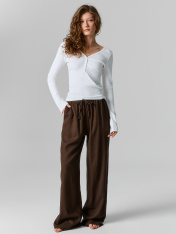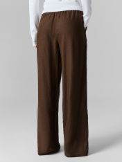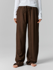 Женские домашние брюки свободного силуэта — это сочетание удобства и естественного стиля для уютных домашних образов. Они выполнены из натурального льна и вискозы. такое сочетание материалов подарит легкость, мягкость и воздухопроницаемость, идеально подходя для домашнего гардероба. Свободный крой позволяет чувствовать себя непринужденно, обеспечивая максимальную свободу движений. Эластичный пояс с кулиской добавляет комфортную посадку и возможность регулировки, а боковые карманы делают модель практичной и функциональной. Низ изделия обработан швом вподгибку, что обеспечивает аккуратность и долговечность. Для создания стильного домашнего комплекта вы можете дополнить брюки рубашкой из этой же коллекции. Такой комплект обеспечит уют и гармоничный образ для комфортного отдыха!