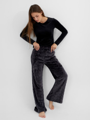 Женские домашние брюки — это уют и элегантность для вашего отдыха. Модель выполнена из мягкого трикотажа с меховым ворсом, который обеспечивает тепло и нежное прикосновение к коже. Прямой свободный крой со средней посадкой и эластичным поясом на широкой резинке гарантирует комфорт без давления, идеально адаптируясь к фигуре. Аккуратная обработка низа сохраняет форму брюк даже после множества стирок.<br>_x000D_ <br>_x000D_ Нежный цвет создает расслабляющую атмосферу, напоминая о весенних цветах, и легко сочетается с домашними футболками, свитшотами или пижамными кофтами. Если вы хотите купить брюки домашние женские, которые дарят ощущение мягкости и тепла в прохладные дни, эта модель станет прекрасным выбором. Женские домашние брюки с меховым ворсом — это не просто одежда для дома, а источник уверенности и гармонии, который подчеркнет вашу любовь к комфорту и стилю. Они идеальны для вечеров на диване, утреннего кофе или отдыха с книгой._x000D_