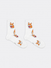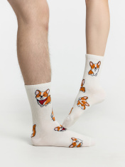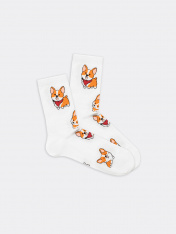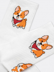 рис.1906 Носок классический гладкий с плотным высоким бортом и рисунком в виде собачек.