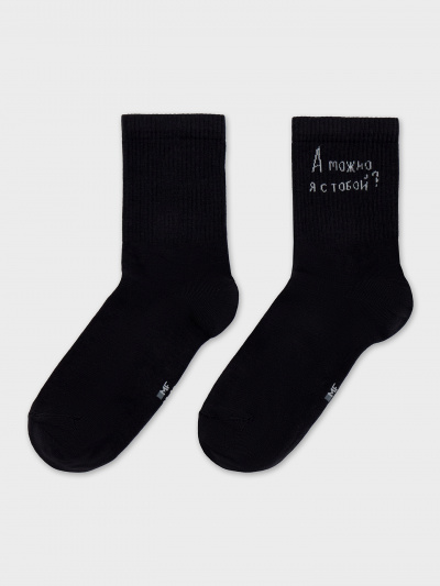 Высокие классические носки унисекс с плотным бортом и рисунком в виде надписи "А можно я с тобой". Выполнены из высококачественного гребенного хлопка — тонкого, прочного и эластичного. Натуральные волокна отлично пропускают воздух и впитывают влагу,обеспечивают ощущение комфорта в течение дня. Благодаря небольшому количеству эластана в составе, носочки хорошо облегают и сохраняют форму, практичны и долговечны. Пятка и мысок дополнительно усилены для защиты от протирания при активном движении. Резинка мягко, но надежно удерживает унисекс носки, не передавливая ногу и не оставляя на коже следов. Нежные, достаточно теплые и мягкие, создадут атмосферу комфорта, тепла и уюта. Порадуйте себя и своих близких прекрасными носочками от Mark Formelle!
