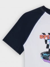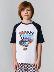 Комплект для мальчиков состоит из джемпера и шортов._x000D_ Горловина круглой формы с притачной обтачкой из рибаны 1*1, _x000D_ R-24 (R11-062.01.220), 96% хлопок; 4% эластан, 160 см, 220 гр/м?._x000D_ Рукава короткие, реглан. Перед и спинка цельнокроеные. _x000D_ Шорты свободные, прямые. Пояс цельнокроеный с эластичной тесьмой внутри (внутрення резина 30RV), ширина 30 мм. Низ джемпера, рукавов и брюк обработаны на 2-х игольной плоскошовной машине швом в подгибку.