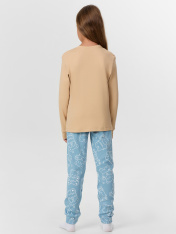 Уютный комплект для девочек, состоящий из джемпера с длинными рукавами и брюк. Джемпер свободного силуэта. Перед и спинка цельнокроеные. Горловина круглой формы из основного полотна. Рукава втачные, низ рукавов с притачными манжетами. Брюки прямые, с притачными манжетами. Пояс с эластичной тесьмой, которая обеспечивает отличную посадку. Стильная и комфортная детская пижама — лучший вариант для прохладного времени года. Широкий размерный ряд, красивые расцветки моделей в линейке. Рекомендуем!